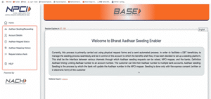 • होम पेज पर जाने के बाद आपको Bharat Aadhar Seeding Enabler (BASE) के ऑप्शन पर क्लिक कर देना होगा।