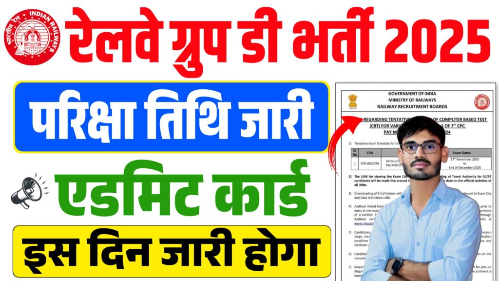 RRB Group D Exam Admit Card 2025 – भारतीय रेलवे हर साल लाखों उम्मीदवारों को रोजगार का अवसर प्रदान करता है। रेलवे भर्ती बोर्ड (RRB) द्वारा आयोजित Group D Exam 2025 सबसे बड़े भर्ती अभियानों में से एक है। जिन उम्मीदवारों ने आवेदन किया है, वे अब बेसब्री से अपने RRB Group D Admit Card 2025 का इंतजार कर रहे हैं।